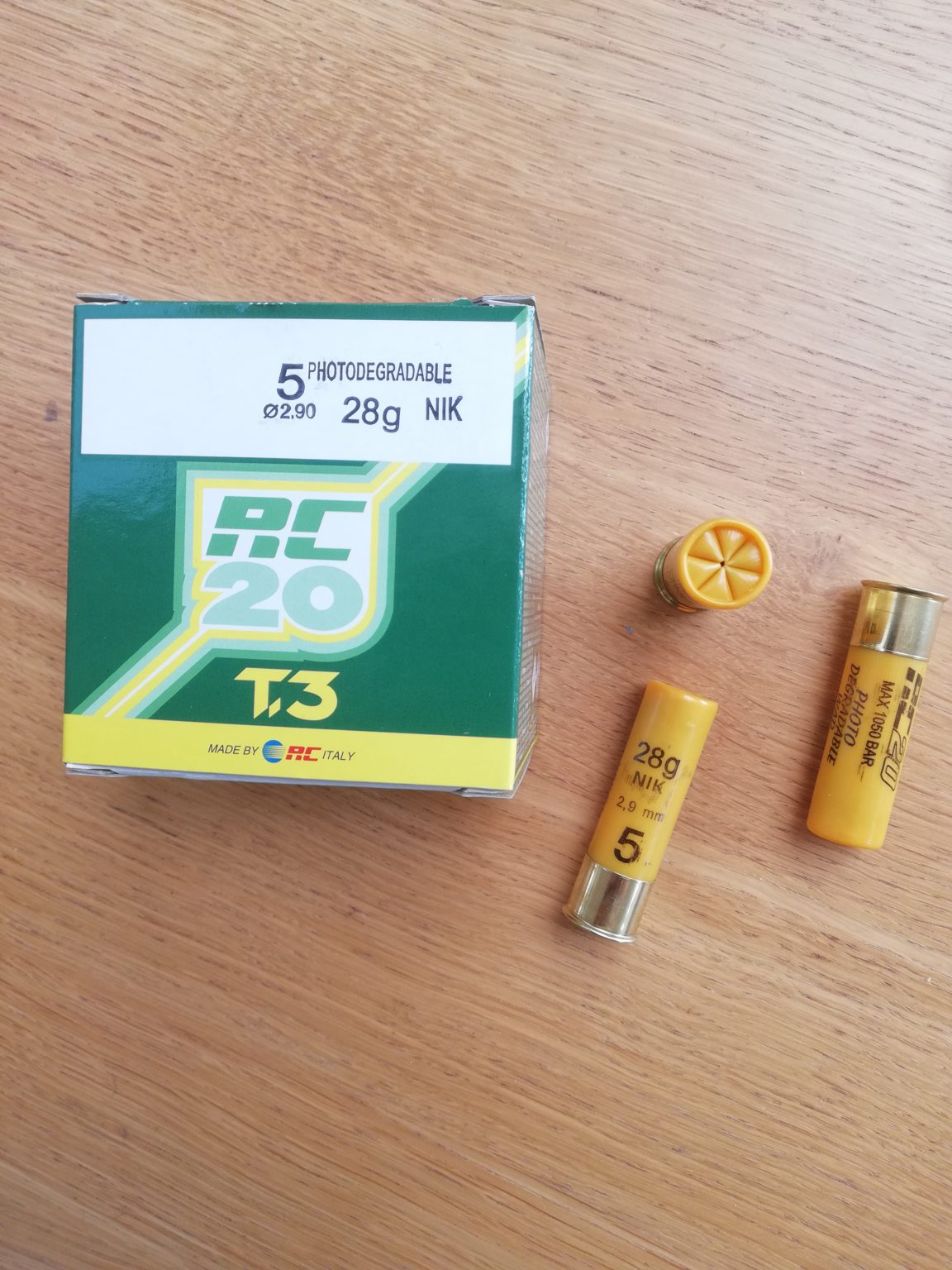 Cartouches marque RC, série CACCIA, calibre 20, T3, 28 grammes, plombs nickelés 11.45