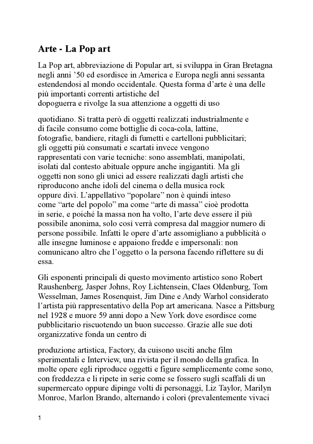 La corrente artistica della Pop Art Docsity