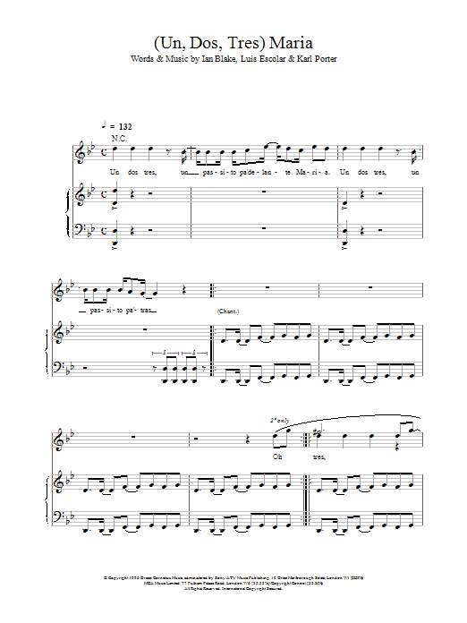 Ricky Martin "(Un, Dos, Tres) Maria" Sheet Music Notes Download Printable PDF Score 109496