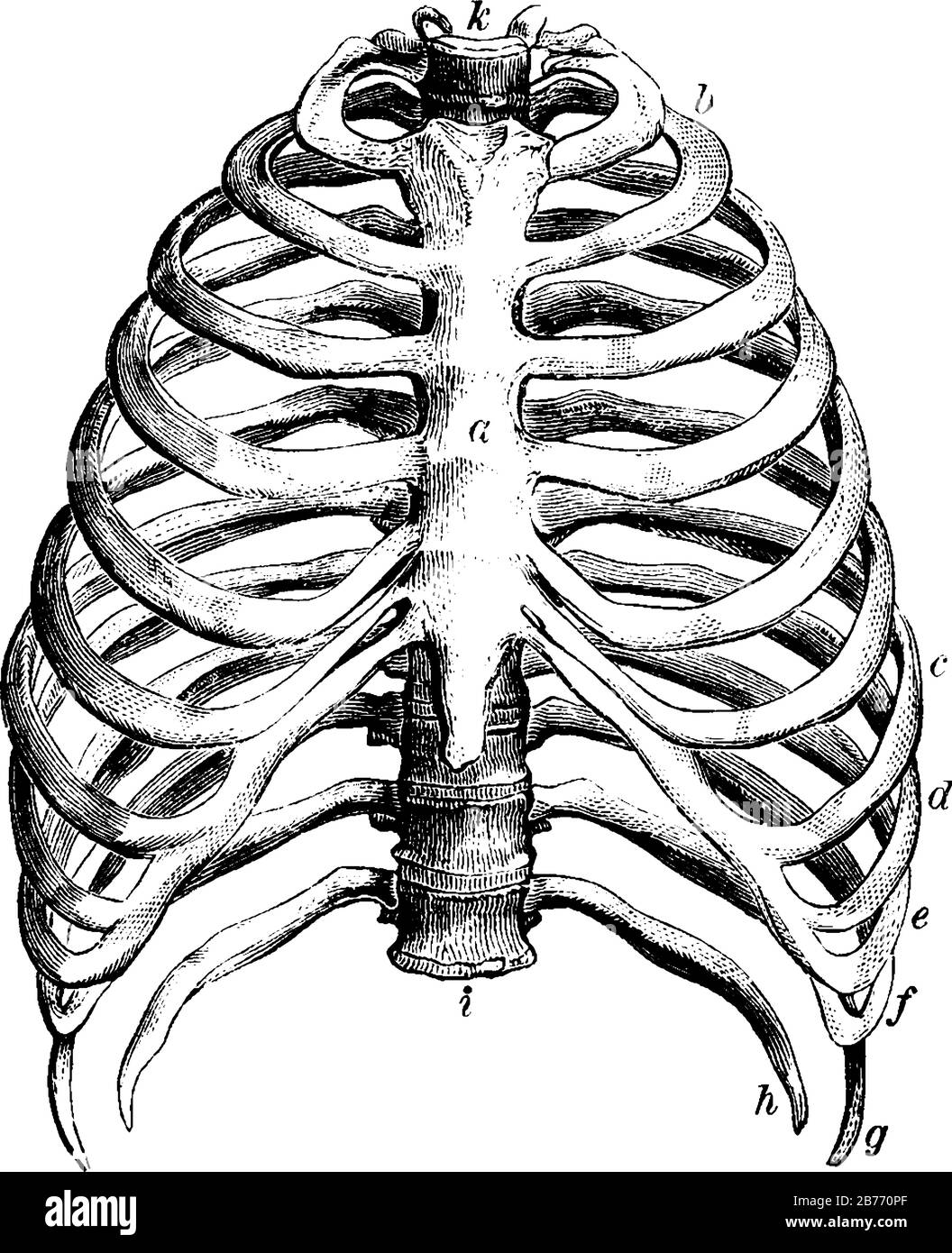 En los perros un par de costillas no está adherida ventralmente en absoluto. Se denominan costillas flotantes (ver diagrama 6.5). Las aves tienen un esternón grande expandido llamado quilla a la que se unen los músculos de vuelo (la carne de 'pechuga" de un pollo asado). Diagrama 6.5 - La costilla