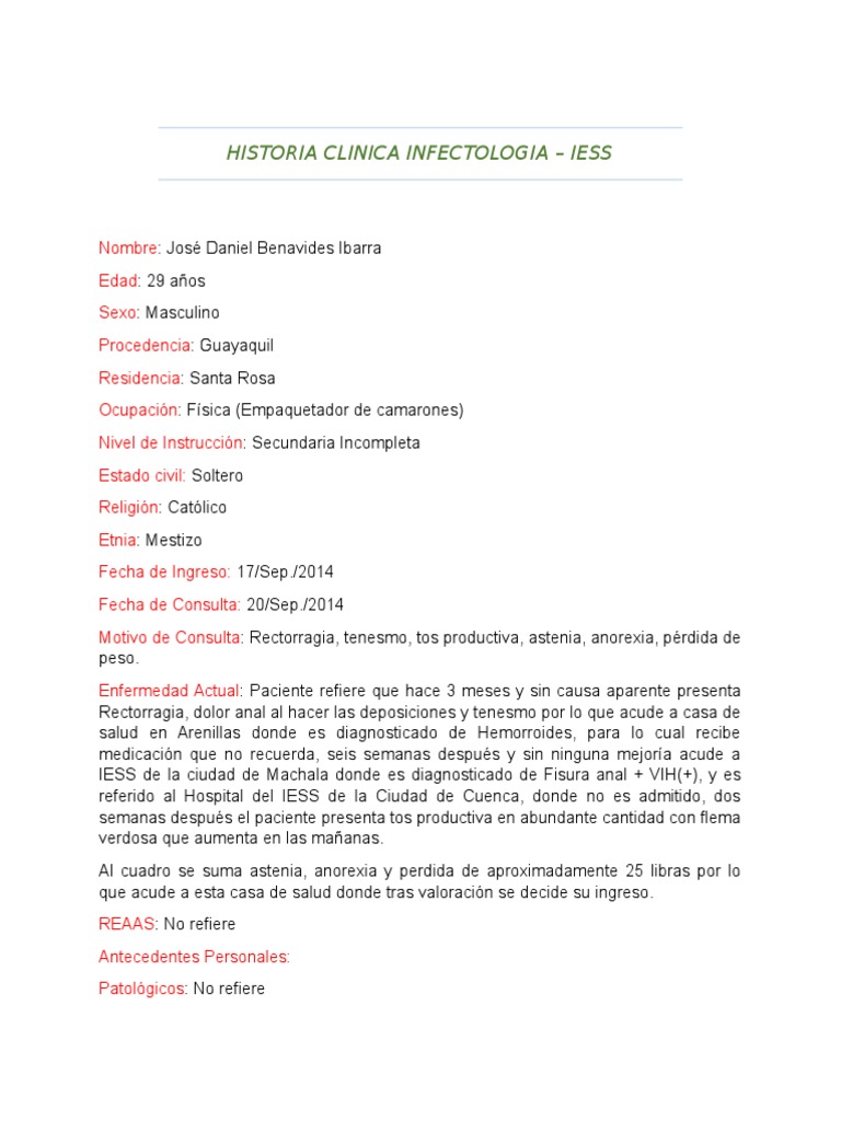 Historia Clinica Infectologia Tuberculosis Ciencias de la Salud
