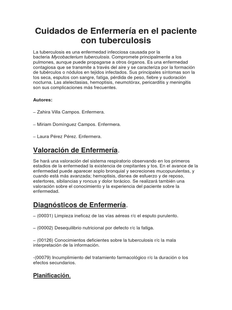 Cuidados de Enfermería en El Paciente Con Tuberculosis Tuberculosis Tos